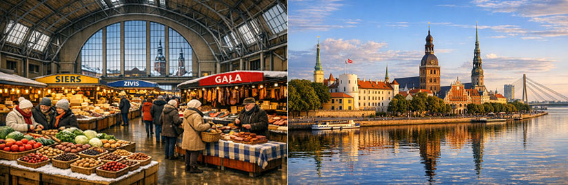 tarafından Dünya Mirası Listesi'ne alınan eski "Hanseatik" şehrinin yürüyerek gezilmesi. Eski Livonya tarikatı Kalesi, İsveçlilerin tarafından yeniden inşa edilen ve 1922'den bu yana Letonya Cumhurbaşkanı'nın resmi konutu olan Riga Kalesi; Dome Meydanı'nda yükselen ihtişamlı Azize Meryem Dome Katedrali; Aziz Piyer Kilisesi; XV. yüzyıldan kalma Riga'nın en eski evleri olan Üç Biraderler; Riga'nın savunma surlarının bir parçası olarak yapılan Riga'nın tek korunmuş şehir kapısı İsveç Kapısı gibi tarihi şehrin önemli yapılarının görülmesi. Son olarak, Riga'nın en ikonik yapılarından biri olan, 1930'lerde inşa edilen eski Zeppelin ambarlarında kurulan Riga Merkez Pazarı gezisi. Art Deco ve endüstriyel mimarinin birleşimi olan yapı Avrupa'nın en büyük kapalı pazarlarından biridir. Zeppelin Ambarları, Riga'nın hem günlük yaşamını hem de gastronomik kültürünü bir arada sunar. Burada dolaşmak, Letonya mutfağının kalbine doğru bir yolculuk gibidir. Devasa hangarların içinde dolaşırken, her bölüm farklı bir koku ve renk sunar: balık bölümünde tuzlu deniz kokusu, ekmek bölümünde sıcak fırın kokusu, tatlı bölümünde kakao ve baharat aromaları. Yerel halk alışveriş torbalarıyla dolaşırken, fotoğraf çekip tadım yapabilirsiniz. Peynir çeşitleri, turşu, tütsülenmiş somon ve ringa balıkları, tütsülenmiş etler, ülkenin en sevilen ekmeği olan Letonya kara ekmeği "Rupjmaize", tatlılar ve geleneksel bitkisel likör Kara Balsam'ı tadarken Letonya mutfağı hakkında bilgi edineceksiniz.