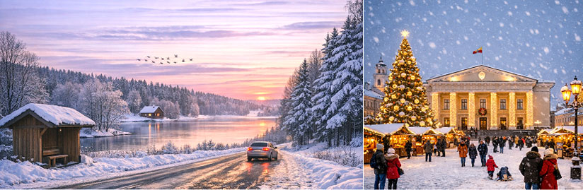 Kahvaltının ardından, Vilnius'a hareket. Yaklaşık dört saat sürecek olan yolculuk Baltık coğrafyasının en şiirsel manzaralarından birini sunar: karın sessizliğinde uzanan yol, karla örtülü köyler, karla kaplı çam ve ladin ormanları, nehirler kıyısında buz tutmuş yüzeyler, zamanın durduğu donmuş göller… Küçük ahşap evlerin bacalarından tüten duman, pastoral bir atmosfer yaratır. Vilnius'a yaklaşırken, küçük kiliseler ve taş köy meydanları, kar altında masalsı bir görünüm sergiler. Ülkenin kültürel, ekonomik ve siyasi merkezi olan Litvanya'nın başkenti Vilnius'a varışta bagajları bırakmak üzere şehrin ana caddesi olan Gedimino üzerinde, müzeler, kafeler ve tarihi mekânlara yürüme mesafesinde bulunan otelimize transfer. Yerel bir restoranda öğle yemeğinin ardından, KGB Müzesi'ni ziyaret ederek sergiler, yeniden inşa edilmiş hapishane hücreleri ve arşiv materyalleri aracılığıyla Sovyet işgali altındaki Litvanya'nın yakın tarihine dair bilgi edinebilirsiniz. Müze, resmi adıyla "İşgaller ve Özgürlük Mücadeleleri Müzesi", Sovyet döneminde KGB'nin merkez binasında yer alıyor ve Litvanya'nın 50 yıllık işgal tarihini, direniş hareketlerini ve siyasi baskıları çarpıcı şekilde sergiliyor. Vilnius "Avrupa Noel Başkenti" unvanıyla ışıl ışıl bir atmosfer sunmakta. En ünlü cazibesi, her yıl farklı temayla tasarlanan ve dünyanın en güzel Noel ağaçları arasında gösterilen Vilnius Noel Ağacıdır. Öğleden sonra geç saatlerde, Katedral Meydanı'ndaki büyüleyici Vilnius Noel Pazarı'nın keşfi. Burası, el yapımı el sanatları, yerel lezzetler ve bayram süslemeleri sunan şenlikli tezgahlarla dolu bir kış harikalar diyarına dönüşüyor. Akşam yemeği, mum ışığında sıcak bir ortam sunan XV. yüzyıldan kalma bir tüccar evinde bulunan Vilnius'un en eski restoranında. Geceleme otelde.