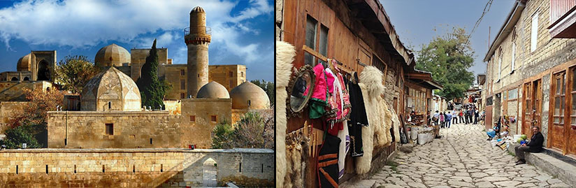 Sheki Pazarı gezisi: baharatlar, tatlılar, helva, taze ürünler, çay ocakları ve restoranlar. Ardından, Azerbaycan'ın en eski şehri (yaklaşık iki bin yıl)