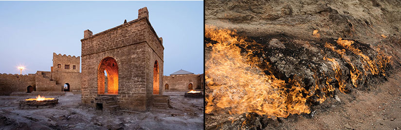 Yanardağ'da duracağız; metan ceplerinden kaynaklanan ve 1958'den beri hiç sönmeyen doğal alevlerin yarattığı etkileyici bir mekandır. Başkent restoranda öğle yemeğinden sonra, 2012'den beri