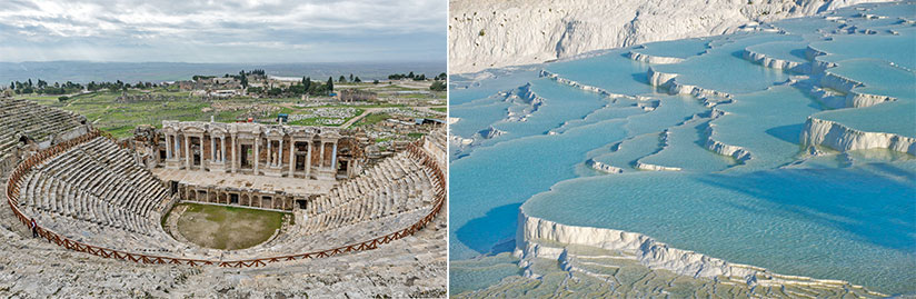 Sabah, kahvaltıdan sonra, Batı Toroslar'ın bir cevheri olan Kibyra'ya hareket. Varışta öğle yemeği. Gölhisar'ın kuzeybatısındaki tepelere konumlanan antik şehirde göreceğimiz en önemli mimari yapıtların başında Stad, Agora, Tiyatro, Meclis Binası gelmekte. Kibyra; Kabalis ve daha sonraki adlandırılmasıyla Kibyratis bölgesinin merkezidir. Kuzeyde Frigya, batıda Karya ve Likya, doğuda Pisidya ile çevrelenen bu bölge, antik dönemden günümüze güneydeki limanları iç bölgelere bağlayan bir kavşak konumundadır. Asia Eyaleti'nin önemli bir parçası olan kent, M.S. 23'de geçirdiği büyük depremle önemli ölçüde tahrip olmuşsa da, İmparator Tiberius'un yardımlarıyla tekrar imar edilmiş ve kent imparatora şükranlarını belirtmek için ismini "Caiseria Cibyra" olarak değiştirmiştir. MÖ 43'de Likya bir Roma Eyaleti olduğunda, daha önce Asia Eyaleti sınırlarında olan kentin, Likya Eyaleti'nin bir parçası haline gelmiş. Strabon; Kibyra'lıların Pisidya, Solym, Hellen ve Lidya dilleri olmak üzere dört dil kullandıklarını, demir işçiliği ve kakmacılıkta usta olduklarını aktarır. Ayrıca epigrafik ve arkeolojik araştırmalar, dericilik ve seramik üretiminde önemli bir merkez olduğunu ortaya çıkarmış. Antik Kent gezisinden sonra, Gölhisar'da öğle yemeği ve Salda Gölü'ne doğru yola çıkış. Salda Gölü, Göller Bölgesi içinde, ormanla kaplı tepeler, kayalık araziler ve küçük alüvyal ovalarla çevrili hafif tuzlu karstik bir göldür. 184 metreye varan derinliği ile Türkiye'nin üçüncü en derin gölü olup Dünya'da ki Mars özelliği gösteren iki yerden biridir. Göldeki magnezyum yüklü beyaz kayaların aynısı Mars'ta da olduğu için buraya Mars yüzeyli göl denmekte. Gölün toprak yapısının sahip olduğu mineraller sayesinde, göl suyunun bazı cilt hastalıklarına karşı tedavi edici etkisi vardır. Suyunun temiz ve berrak oluşu ve turkuaz rengi, güneybatı ve güneydoğu kıyılarında yer alan küçük kumsalların, okyanus adalarını andırmalarına neden olmakta. Çeşitli molalar vererek gölün çevresini keşfettikten sonra Laodikya gezisi için hareket. M.Ö. 1. yüzyılda Anadolu'nun en önemli kentleri arasında olan Laodikeia, hristiyanlık döneminde de 7 önemli kiliseden biri olmuş. Son yıllarda yapılan kazı ve restorasyon çalışmaları sayesinde yeniden doğan bu görkemli antik kent, bütün dünyadan gelen ziyaretçilerle dolup taşmakta. Ardından Pamukkale'ye doğru yola devam. Varışta, akşam yemeğine kadar otelin sıcak su havuzlarından faydalanabilirsiniz. Akşam yemeği ve geceleme Colossae Spa & Thermal Hotel' da.8. Gün PazarPamukkale - Hierapolis - İstanbul (uçak ile)