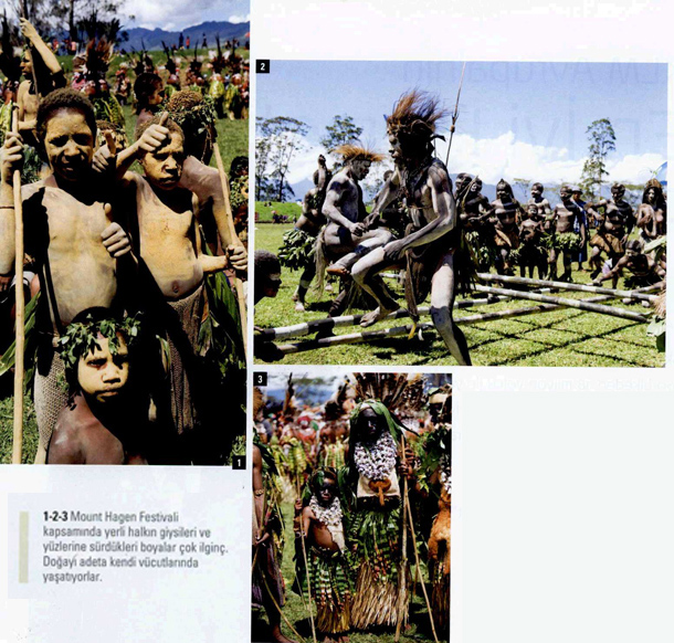 Dolayısıyla uçuşları denk getirmek bir hayli zor oldu. Yılda sadece bir kaç bin turistin gezdiği bu ülkede düzgün otel sayısı da oldukça sınırlı. Üstelik festival dönemlerinde yer bulabilmek için en az bir yıl önceden yer ayırtmak gerekiyor. Sonuçta biz küçük bir grup olarak bu sorunları hızla çözdük ve seyahate hazırlandık. Tabii bu arada ülkenin güvenli olmayan bölgeleri de olduğu için, programı çok iyi çalışarak, dikkatlice hazırlamak gerekti. Mesela başkent Port Moresby'nin tehlikeli olduğu konusunda uyarıldığımız için bu şehri programa almadık. Biraz coğrafya Avustralya'nın kuzeyi ve Endonezya'nın doğusunda yer alan Papua Yeni Gine, 829.200 km² yüzölçümüyle, Grönland ve Avustralya'dan sonra dünya'nın en büyük adası olarak Huliler hakkında yerli halk Huli’ler savaşcı bir kişiliğe sahip olduklarından bir anda birbirlerini kolayca öldürebilecek kadar kavgaya tutuşabiliyorlarmış. Genelde sempatik ve misafirperver bir görünümleri var. Sizi birkaç gün kalmak için köylerine bile davet edebiliyorlar, tabii bu riski alıp almama kararı sizin. ![]()